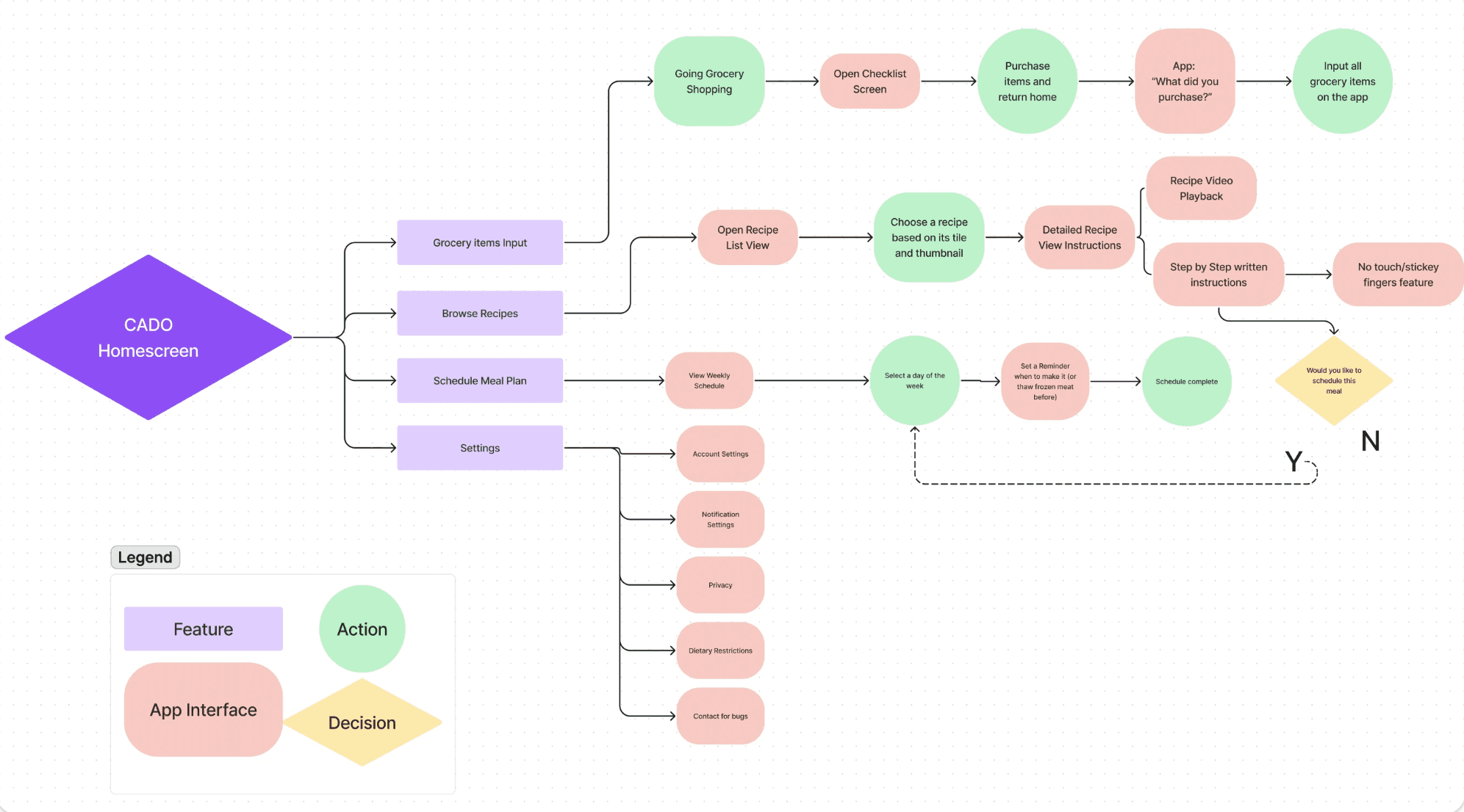 Next, I created a more organized user flow comprising the 4 main features I plan to include: