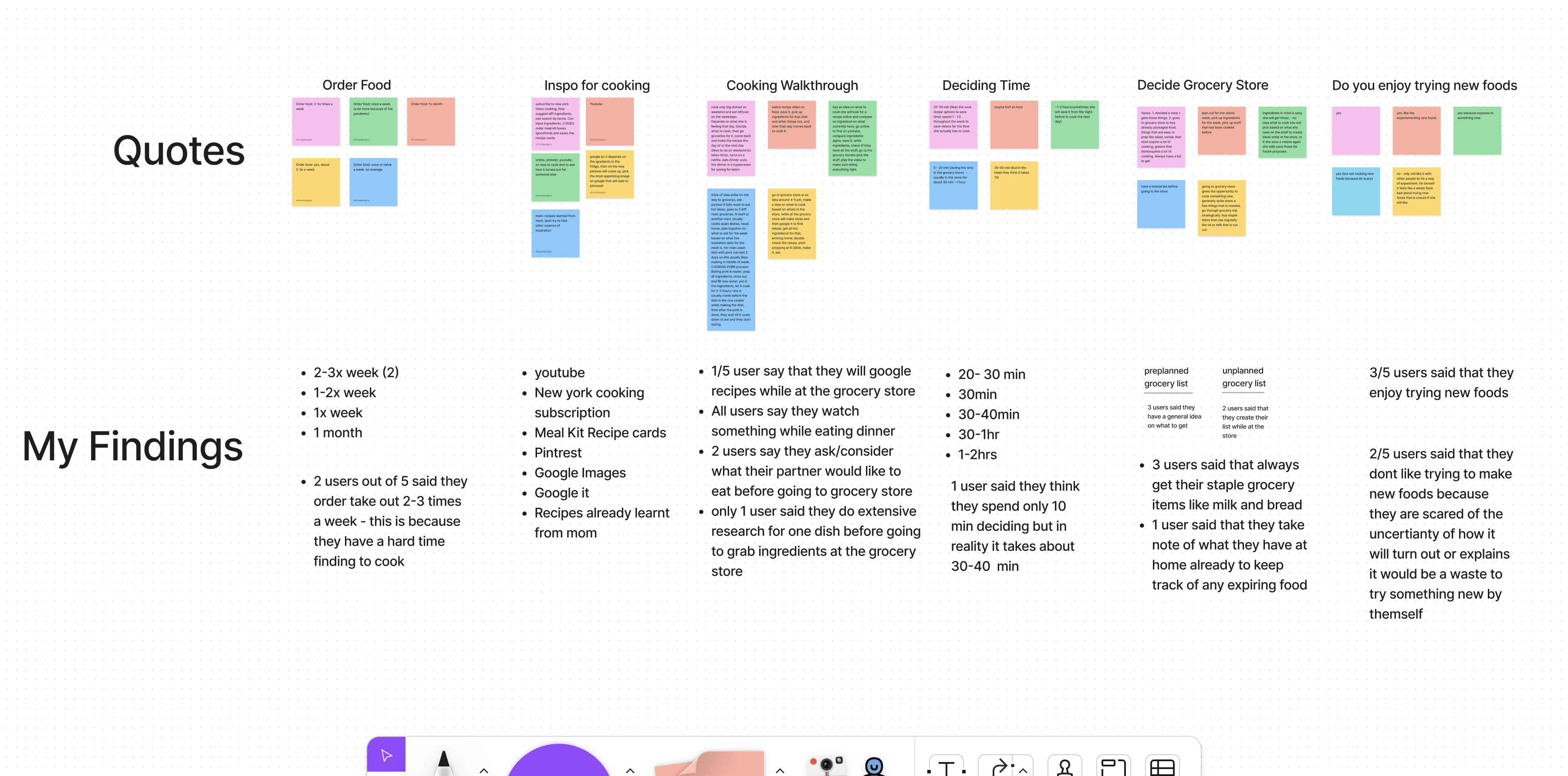 This is where I organized all the users quotes and special findings to use for my project.