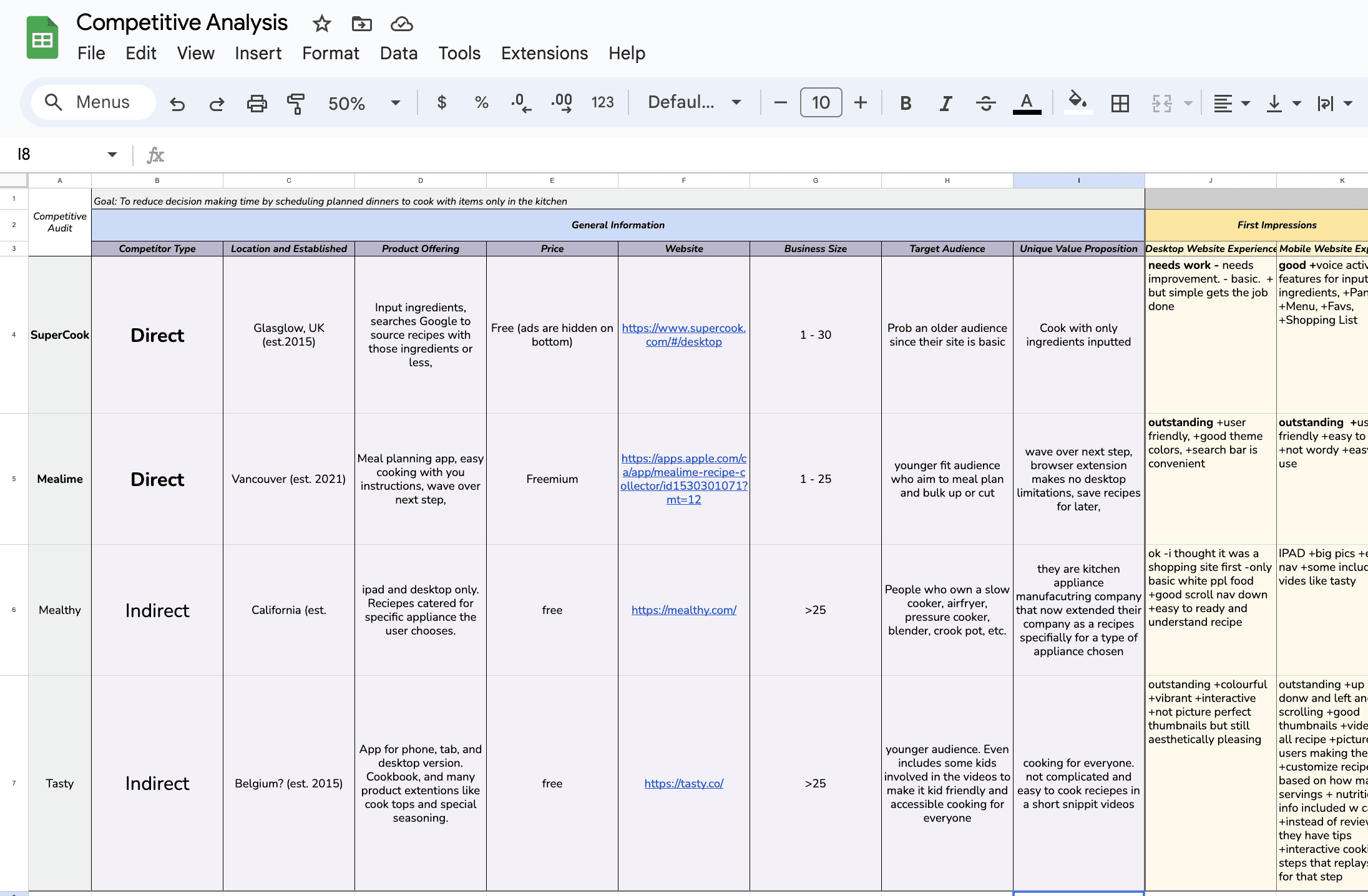 I investigated various recipe apps to identify any gaps I could potentially address. The primary competitors include: Tasty, Mealthy, Supercook, and Mealime.