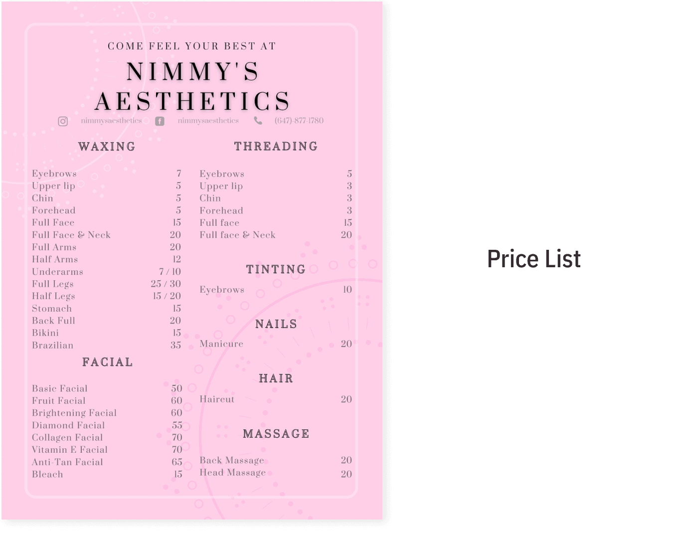 Nimmy's Aesthetics is a beauty centre for women in Milton, Ontario, owned by a renowned beauty aesthetician. Women come here to feel their absolute best. Providing all kinds of services such as waxing, threading, facials, and more!